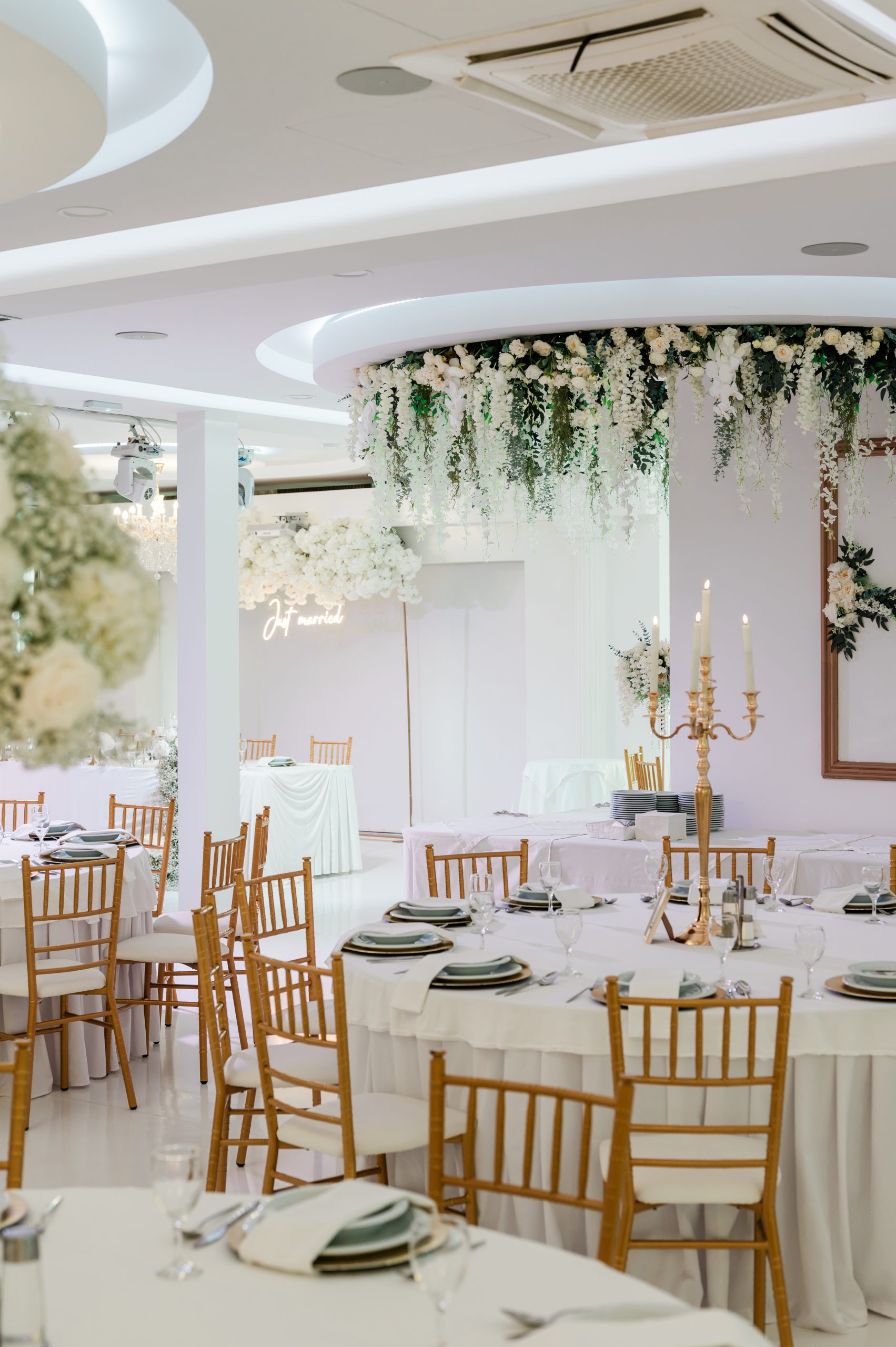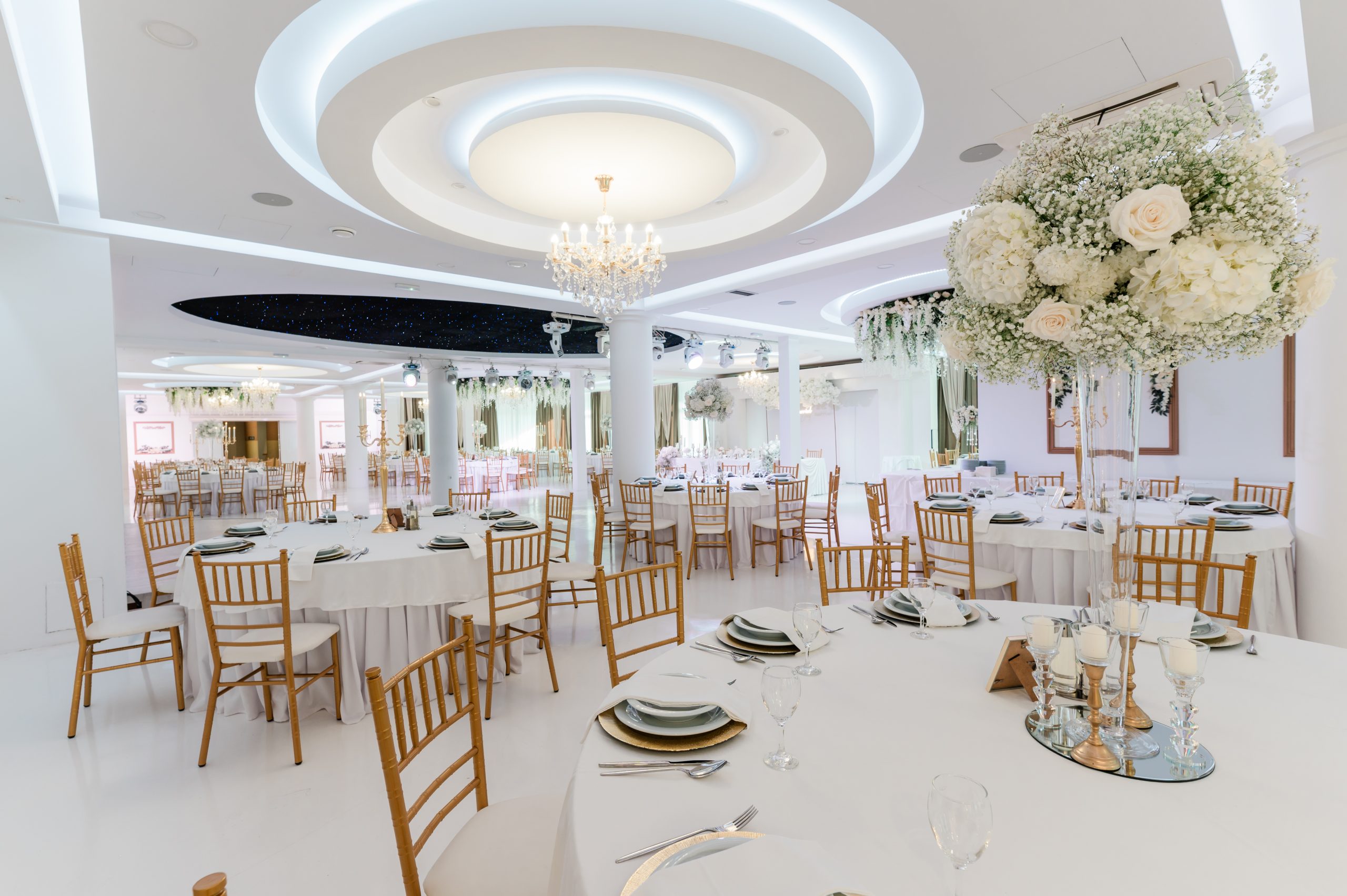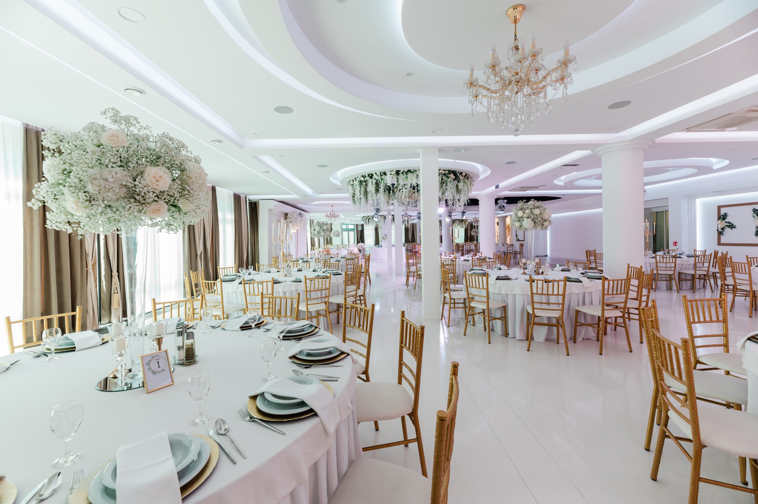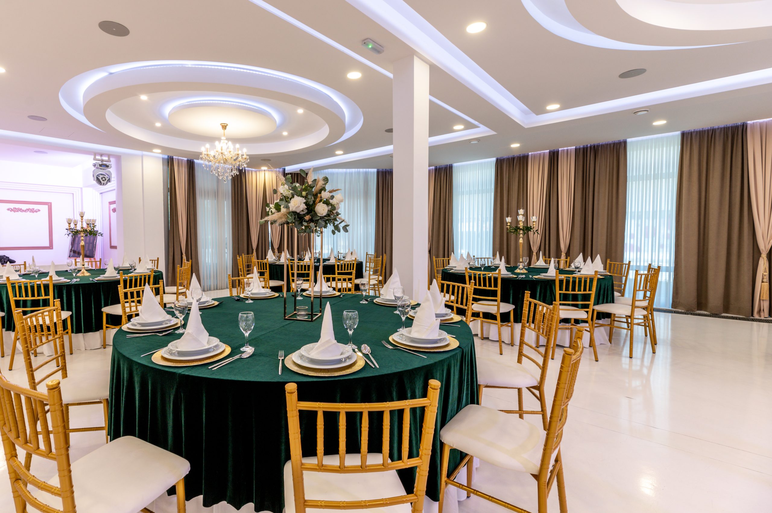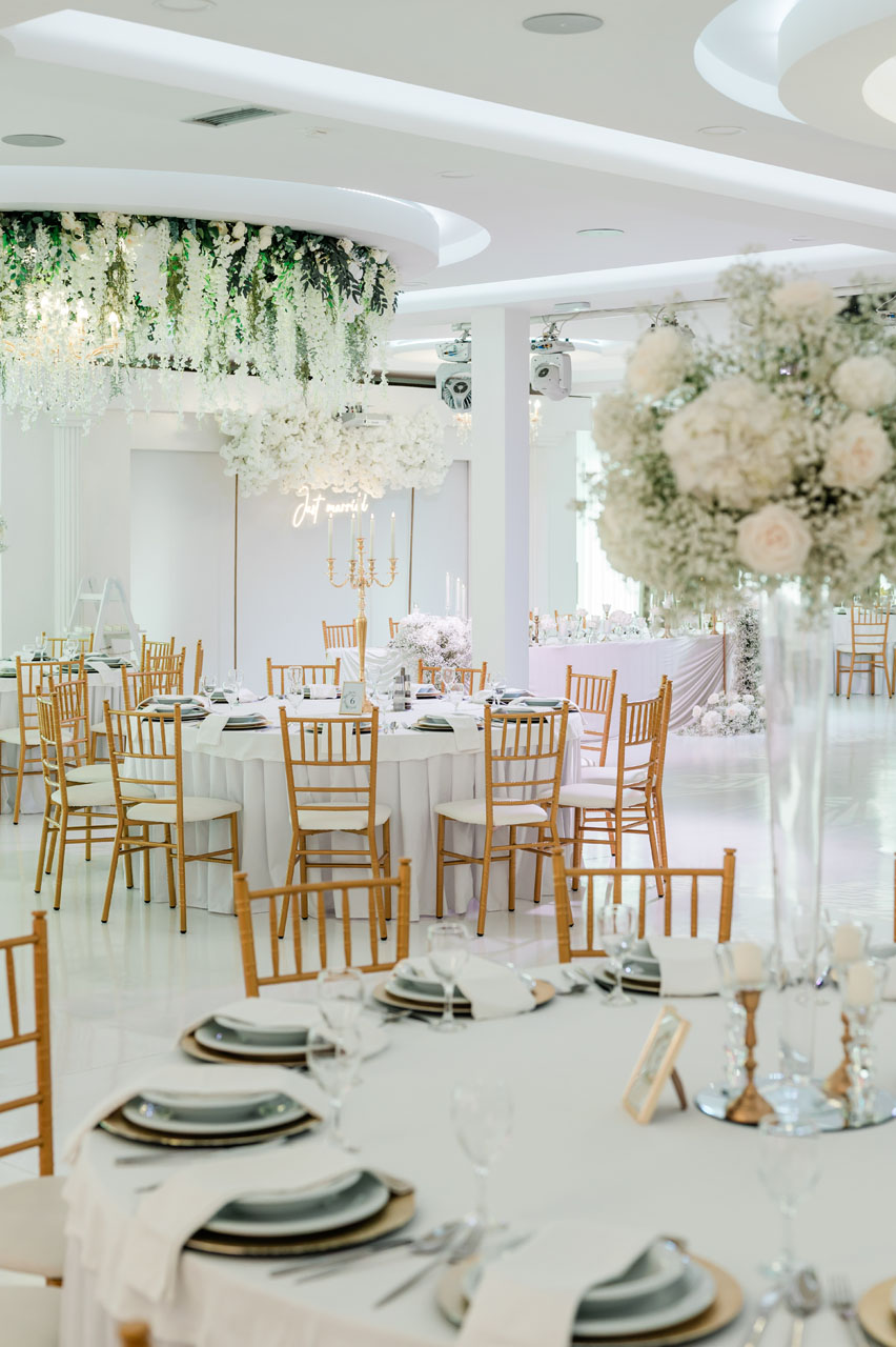 - Custom hall decoration (tablecloth, overlay, and napkin color coordination according to your wishes)